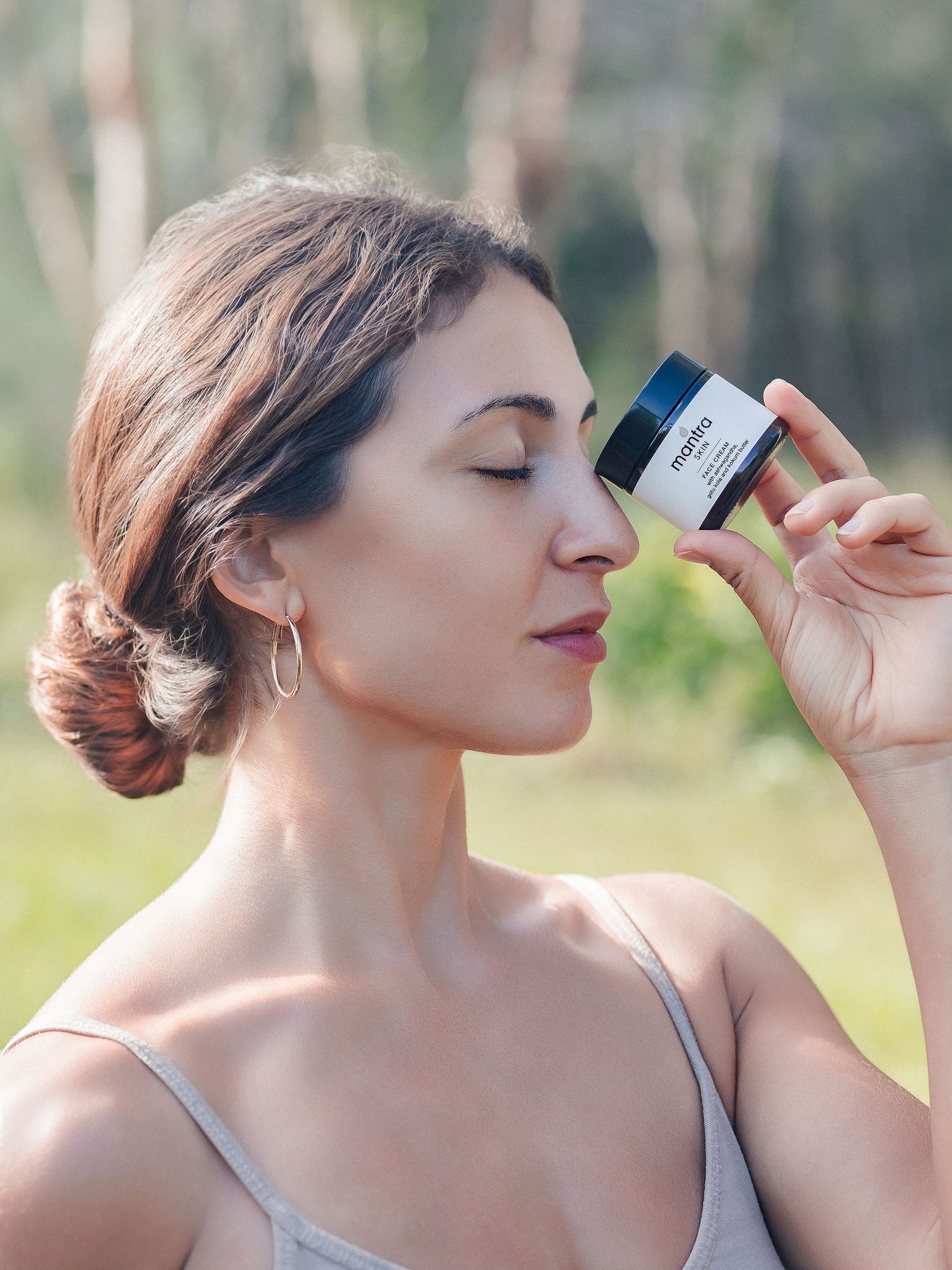 Mantra Skin was founded by Dr. Tharusha Jayasena, a neuroscientist with over 15 years of experience in medical research. Dr. Jayasena, originally from Sri Lanka and raised in Australia, has always had a deep interest in Eastern spiritual practices and alternative medicine, including Ayurveda, meditation, yoga and nondual Hinduism and Buddhism. She is a certified yoga teacher and leads meditation and wellness workshops.